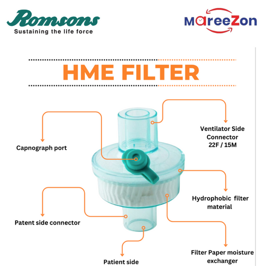 Romsons Disposable HME Filter (SH-2095) – Heat & Moisture Exchanger | Sterile | Single-Use