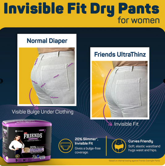 Friends UltraThinz Slim Fit Dry Pants for Women – Ultra-Thin Adult Diaper Pants with Invisible Fit & Odour Lock